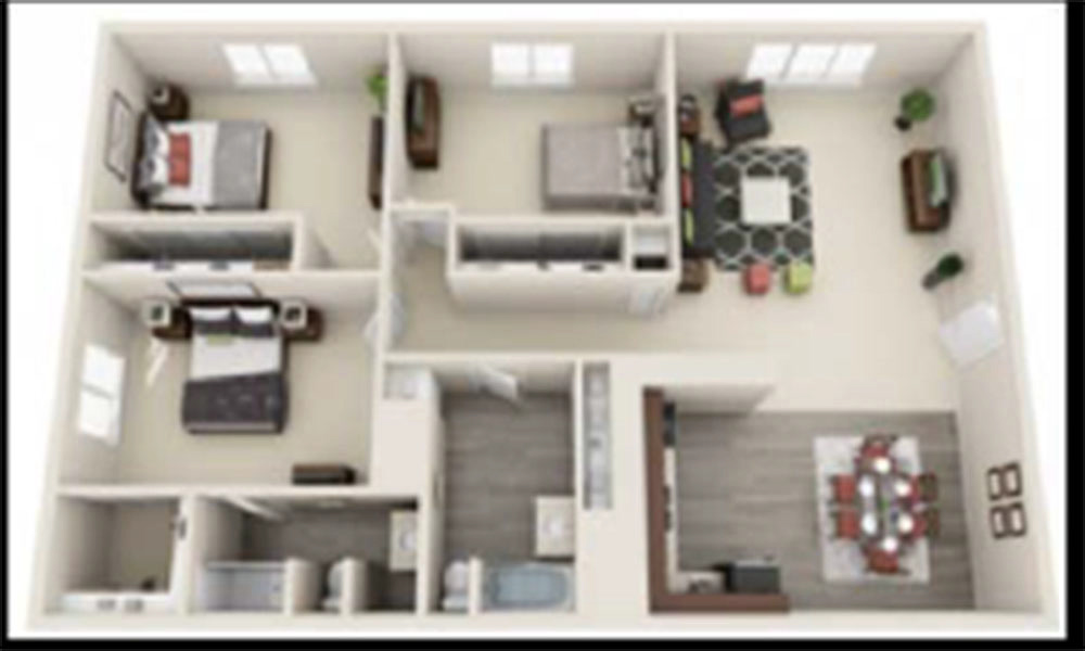 Two Bedroom / Two Bath - 996 Sq. Ft.*